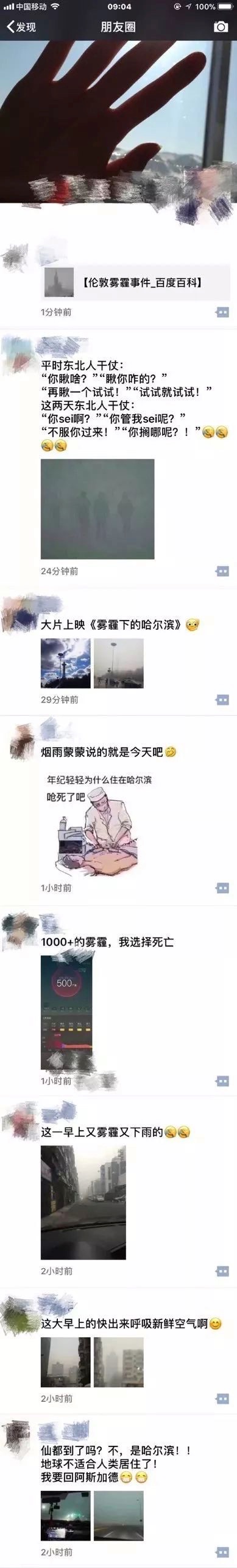而更多更有才華的人則在朋友圈上表達了自己對霧霾天氣的無限感慨。
