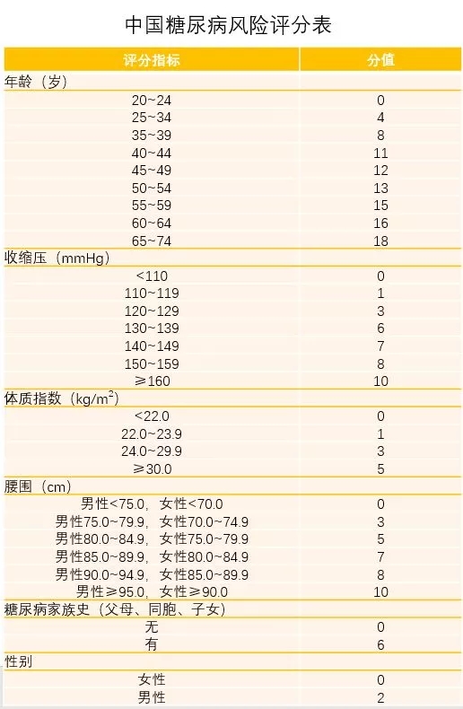 注:1 mmHg=0.133kPa;體質(zhì)指數(shù)=體重(千克)/身高2(米2)。判斷糖尿病的最佳切點為25分,總分≥25分者應(yīng)進行口服葡萄糖耐量試驗檢查。